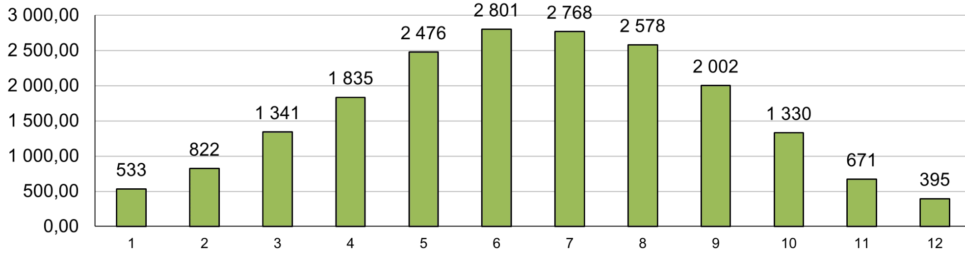 - Максимальная выработка летом — 93,37 кВт в сутки
